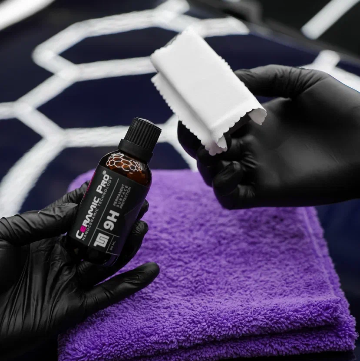 Нанесение гидрофобного состава и финальная полировка фиброй.