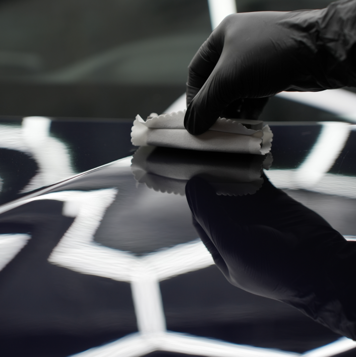 После предварительной полировки от мелких царапин, Мастер аккуратно наносит состав на каждый миллиметр кузова с использованием аппликатора, а затем тщательно располировывает его по поверхности с помощью микрофибры.